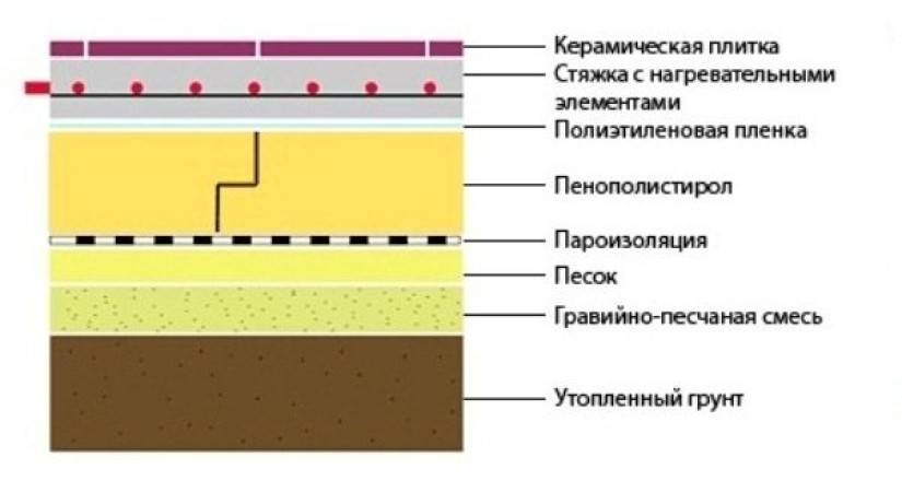 - поверх слоя утеплителя можно укладывать систему теплых полов. Особенно эффективной она будет в том случае, если пенопласт покрыт слоем фольги. Такое покрытие позволит отталкивать тепло и направлять его непосредственно в помещение над полом;