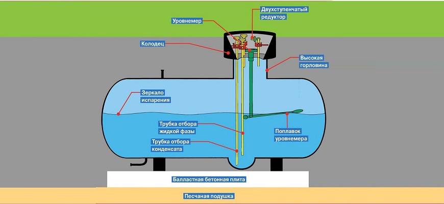 Это связано с тем, что на ограниченном по площади земельном участке, где расположен частный дом и «приусадебный» садово-огородный участок, оптимальным вариантом является использование газгольдера вертикального типа, находящегося под землей.