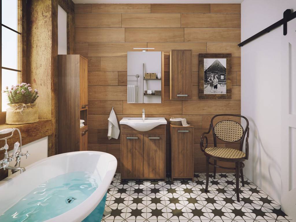 Натуральное дерево – недешёвый вариант оформления, но популярный за счёт своей экологичности. Такие деревянные панели нужно комбинировать с другим, более водостойким материалом в зоне ванны и душевой кабины. Для отделки используют древесину с влагозащитной обработкой воском или специальными маслами.