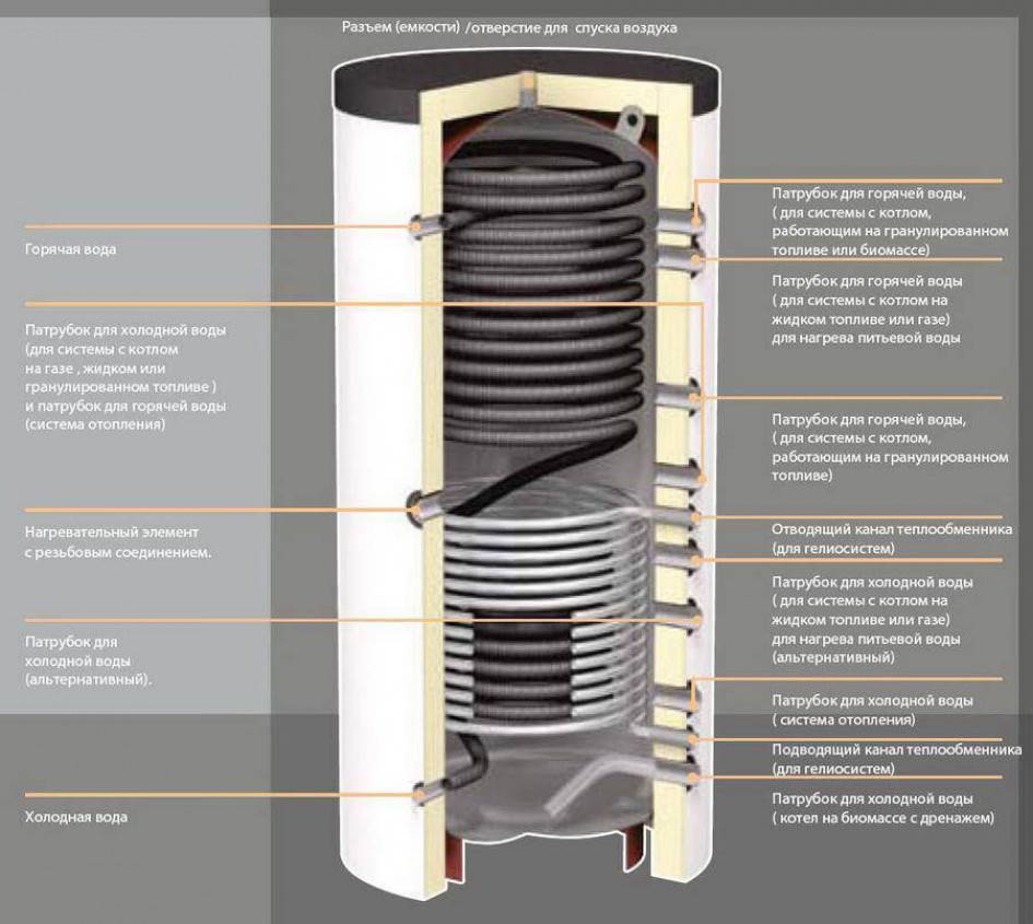 Для обеспечения стабильного водоснабжения котел подсоединяется к бойлеру.