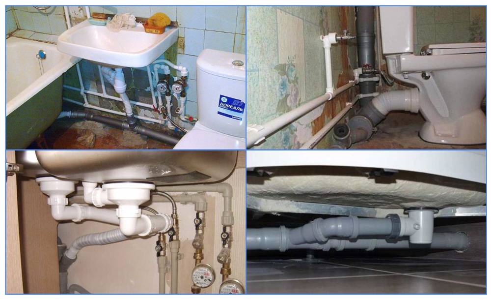 Рис. 2 Примеры подключения к канализации сантехнических приборов