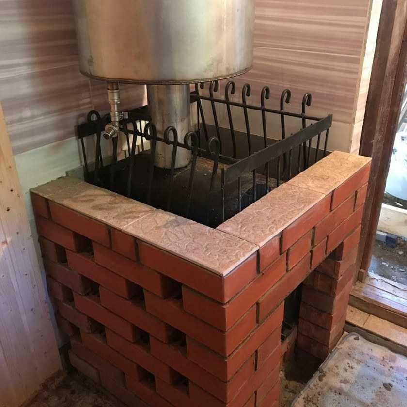 Кирпичная – размещается главным образом на фундаменте. В случае его отсутствия в начале строительства, убирают полы и выполняют кладку основания, только после этого выполняется основная работа. Различают периодического и постоянного действия. Отличие заключается в нагреве камней – напрямую огнем или от настила. Такие работы делает профессиональный каменщик. Она сооружается из жаростойкого кирпича.