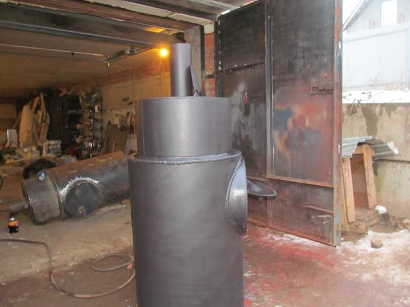 Для небольшого помещения достаточно трубы D 530 или 630 мм. Нельзя использовать тонкостенные трубы – толщина стеночки должна быть не меньше 8 мм. Брать трубу со стенкой ≠ больше 12 мм нежелательно – печь потребует больше топлива и будет дольше нагреваться.