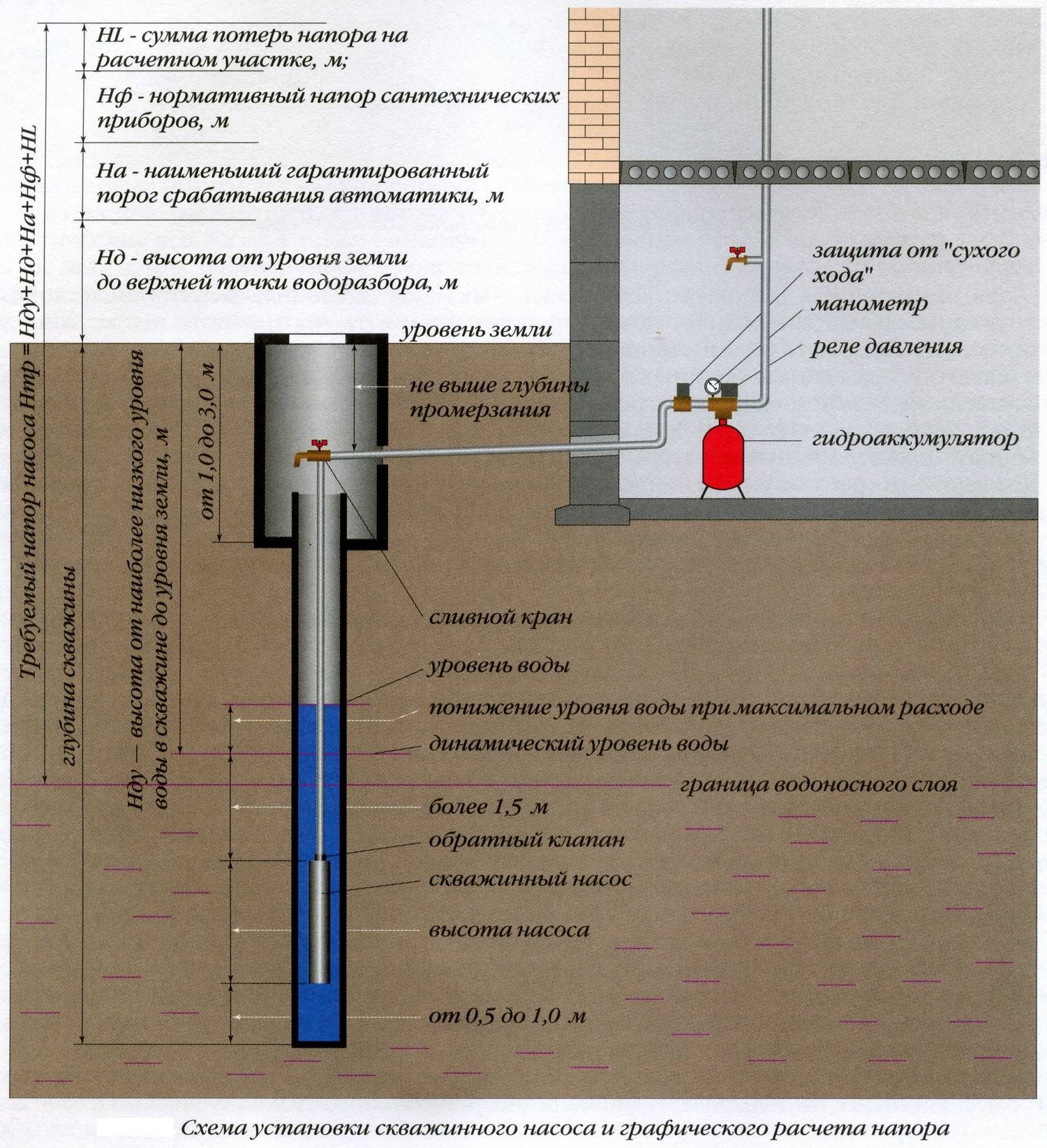 Статический уровень воды указывает ту минимальную высоту, на которую насос может поднять жидкость.