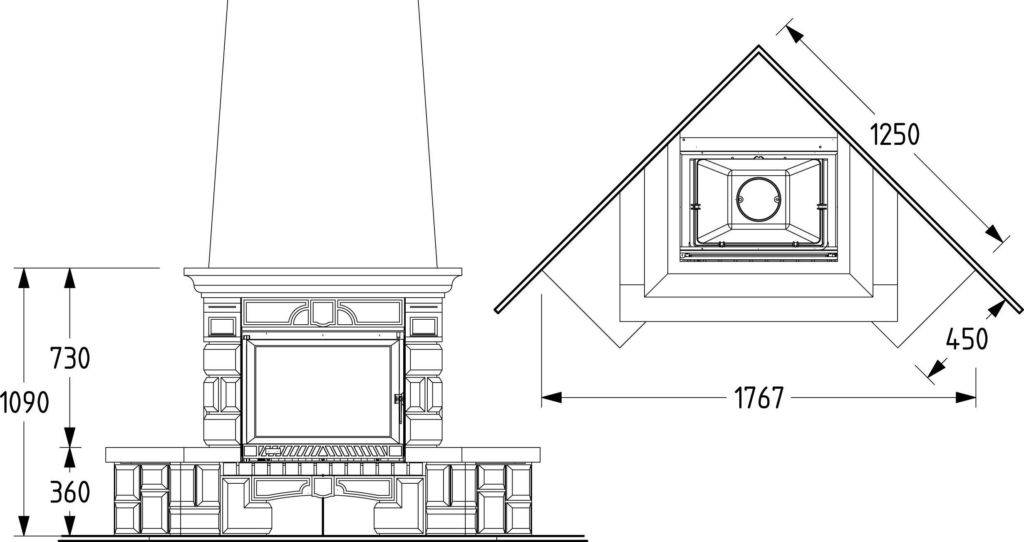 Когда решили, где будет стоять камин, можно начинать изготовление. Сначала подготавливают чертежи, где указываются габариты всех частей конструкции, рассчитывают, сколько и каких материалов потребуется.