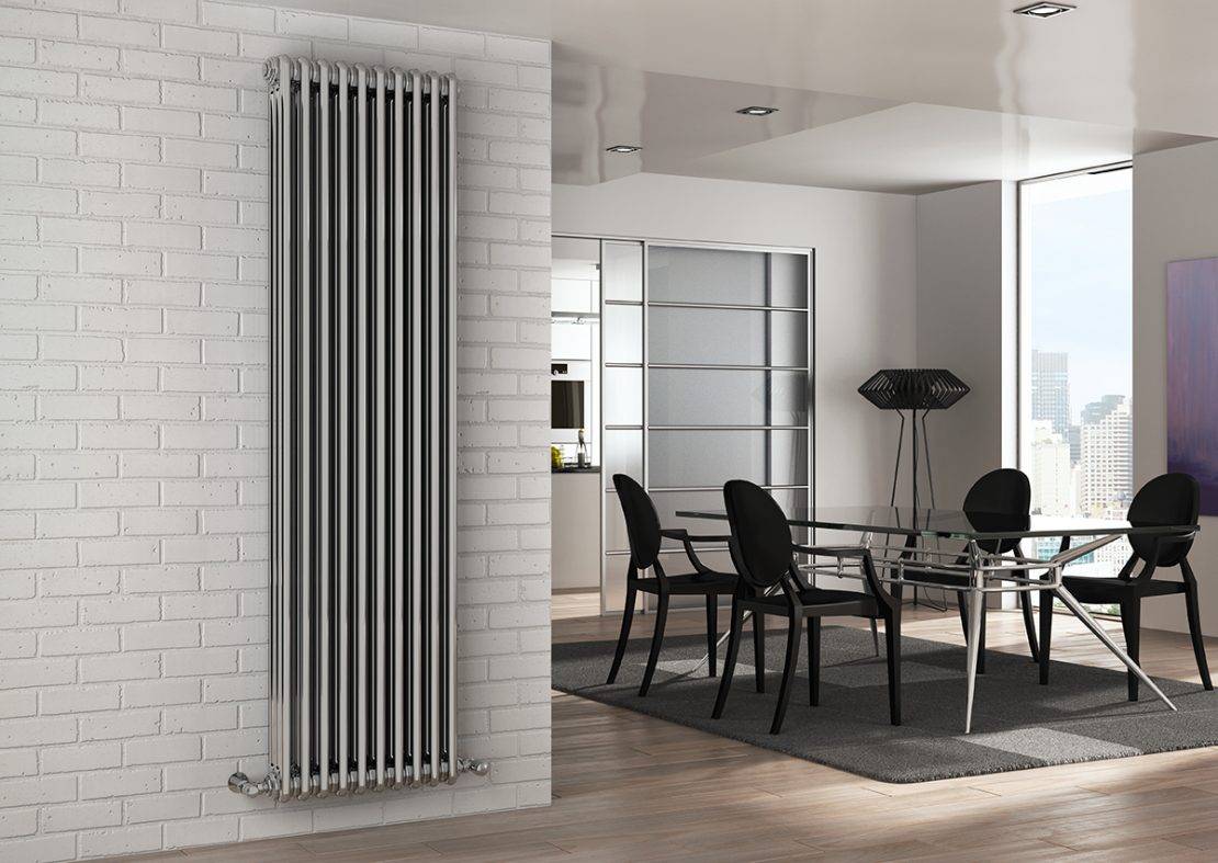 Вертикальные стальные радиаторы отопления тоже имеют высокую теплоотдачу, а варианты из нержавеющей стали не портятся при длительных контактах с водой. Снаружи они полируются или красятся в необходимый цвет, поэтому вы сможете обеспечить гармоничное сочетание такой конструкции с любыми предметами интерьера.