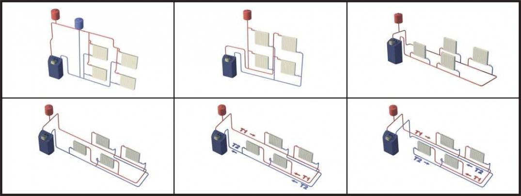 Для транспортировки теплоносителя по системе отопления могут использоваться несколько видов разводки: