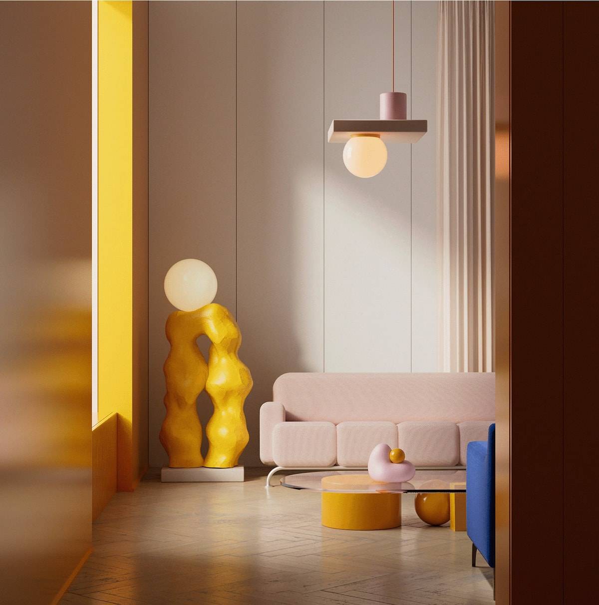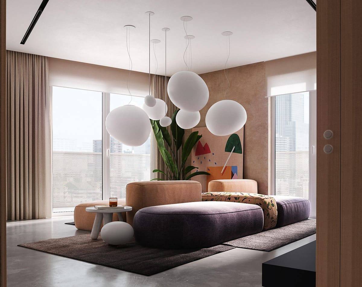 Стеклянные шарики и металлические колеса — модные светильники для гостиной в 2020 году