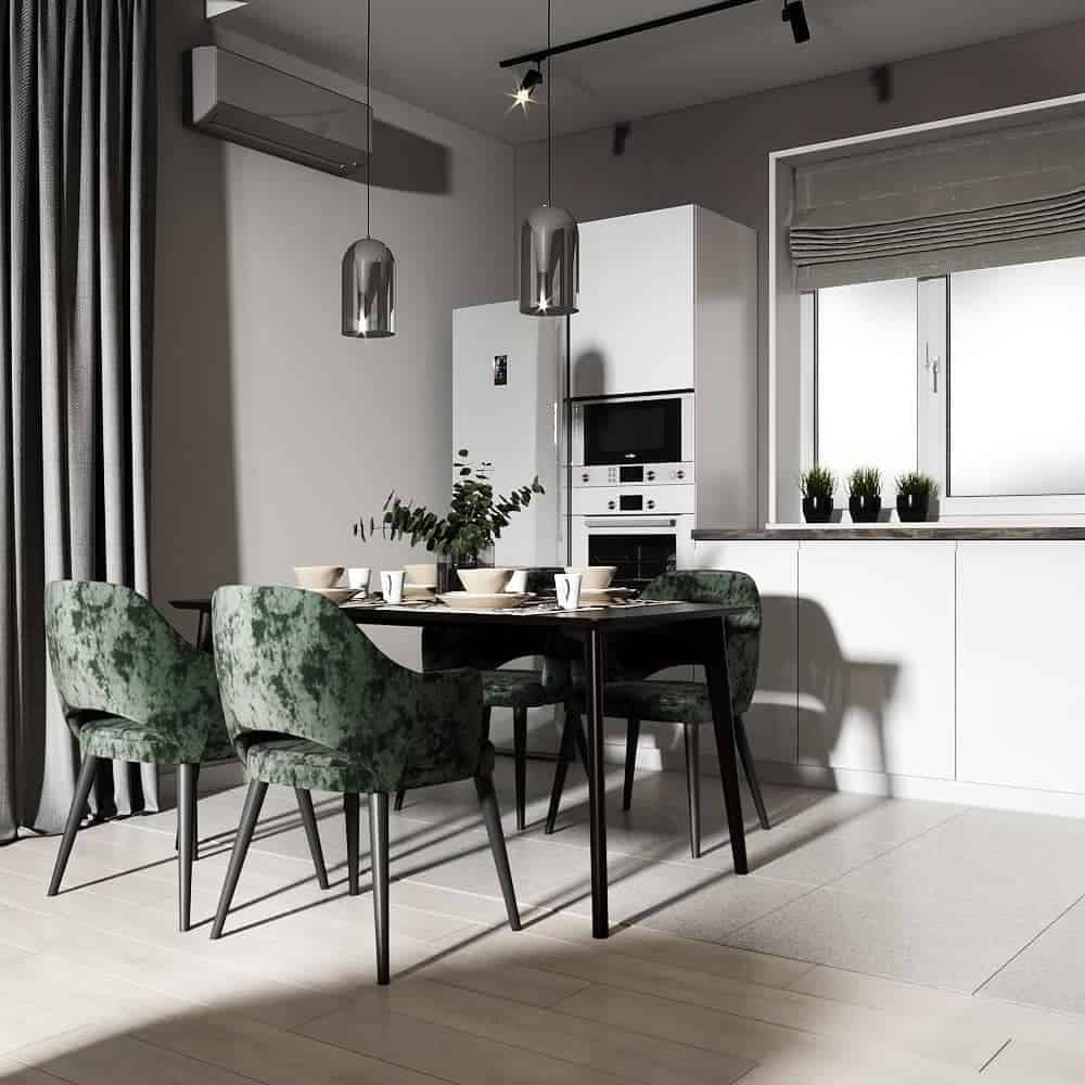 Консервативно настроенным людям приятно осознавать, что по-прежнему модным цветом в интерьере 2021 остается освежающий зеленый колер, который особенно будет актуален в интерьерах с элементами минимализма. Рекомендуется для оформления стен подбирать темно-зеленый фон, а для бархатистой отделки мягкой мебели использовать ультрамариновые или изумрудные цвета.
