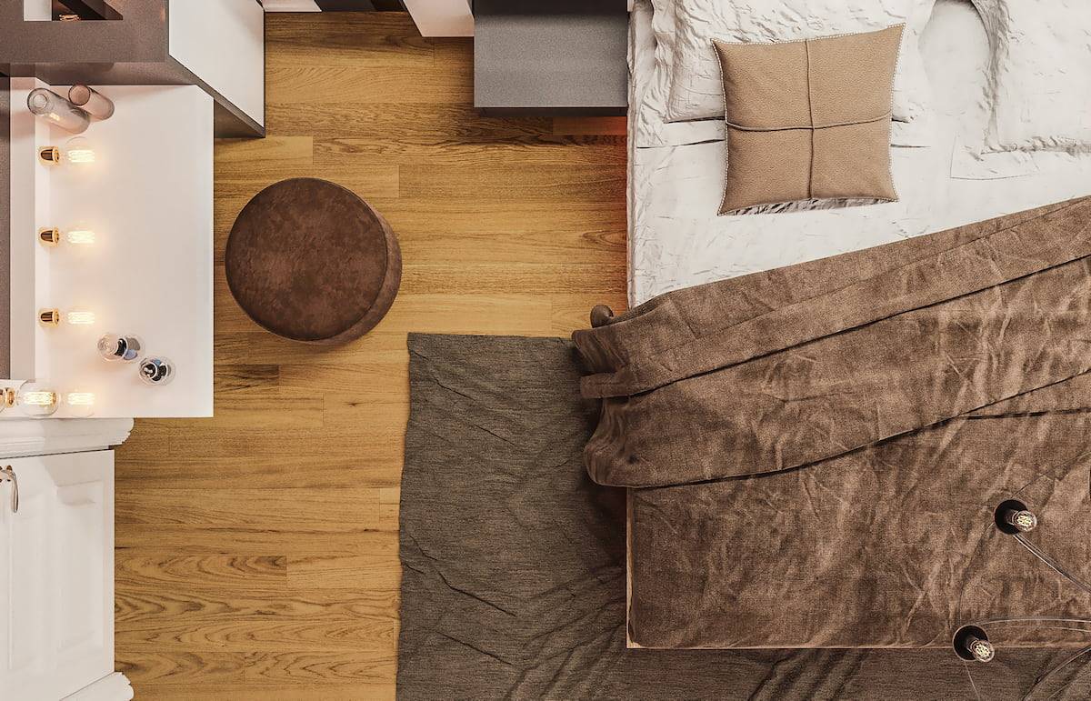 Если есть желание иметь очень простую, не перегруженную деталями спальню, выбирайте Скандинавский стиль. Это оформление не теряет актуальность, особенно если используется очень светлое дерево.