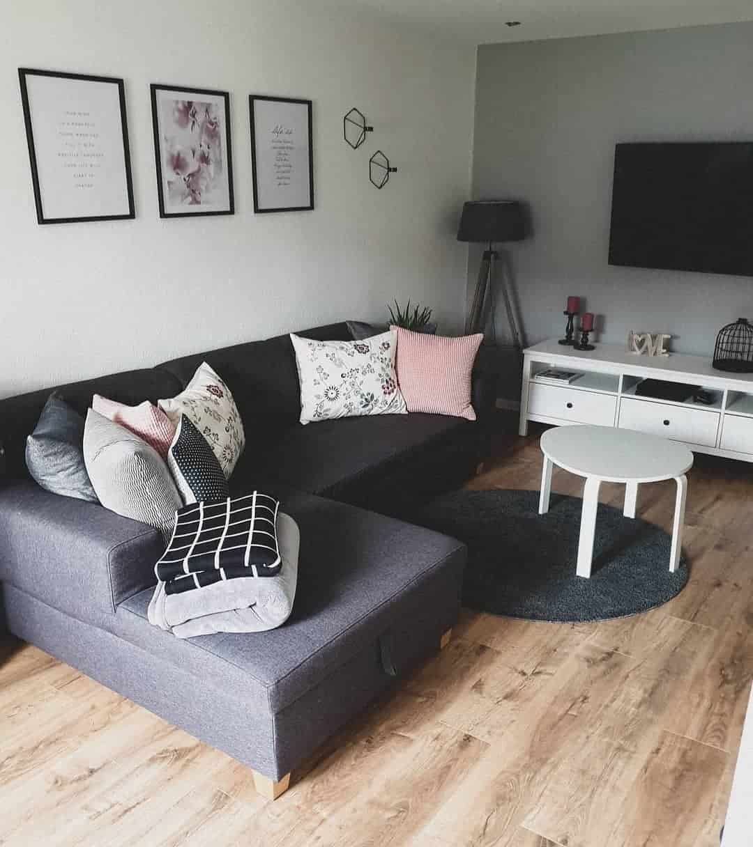 В модной квартире 2020 года нельзя пропустить мебель с закругленными краями или форму с прямыми линиями. Комбинация круглой деревянной столешницы с геометрическими аксессуарами (например, коврик) позволит вам воспользоваться этой тенденцией, и в то же время достичь гармонии в интерьере и красиво организовать пространство.