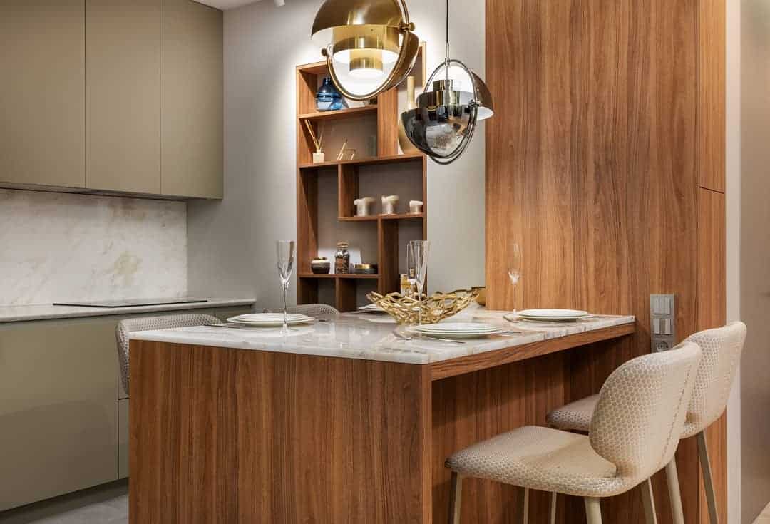 Начнем с кухни. Как уже было сказано, не спешите ломать перегородки. Кухни-гостиные уже не в тренде. Однако это не касается лоджий. Ее объединение с кухней приветствуется.