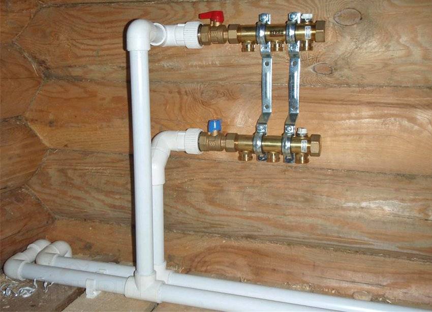 Пример коллекторного узла, распределяющего теплоноситель по контурам «теплого пола».