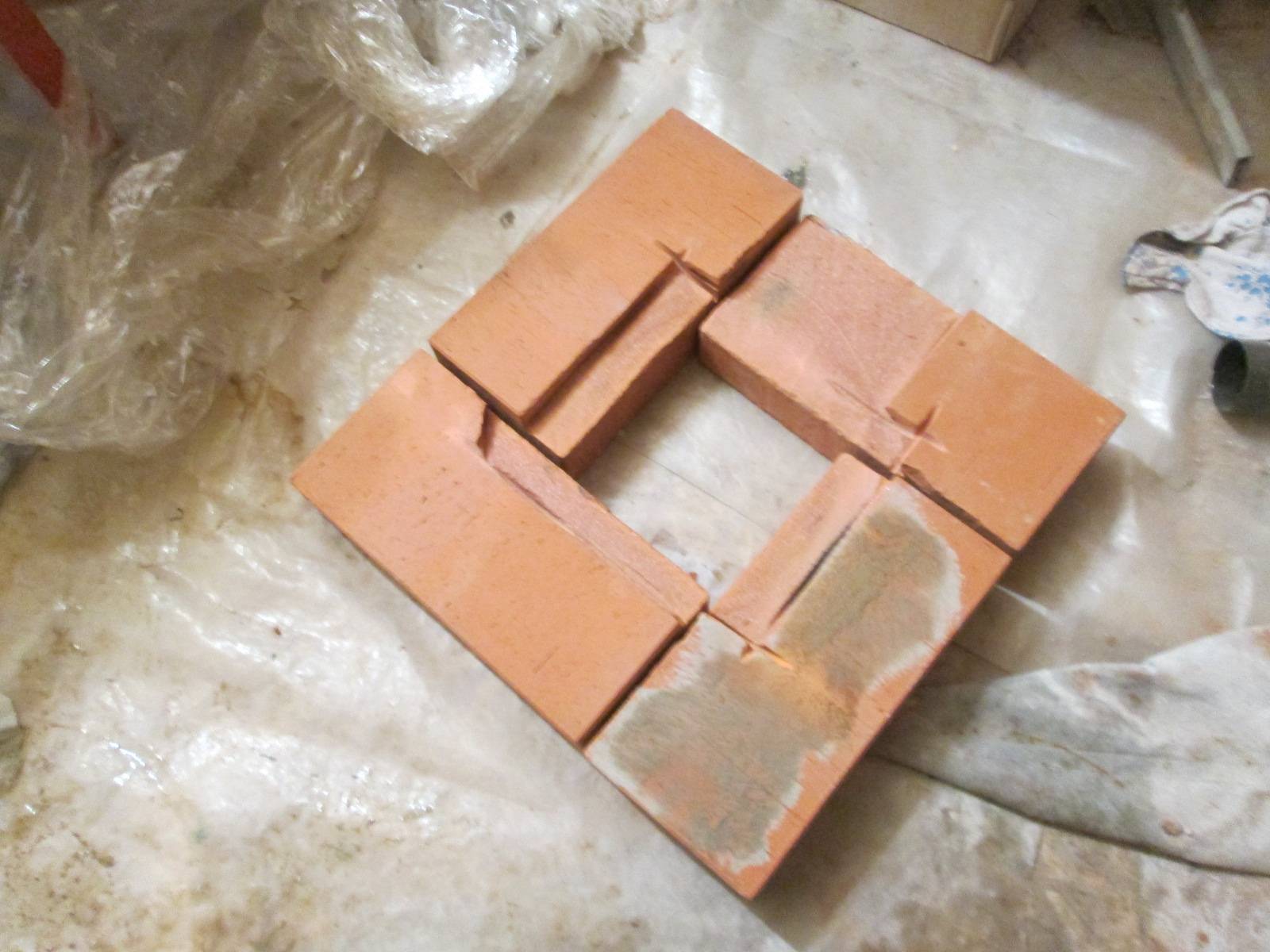 5. Вымеряем и выпиливаем кирпичи которые поставим над задвижкой.