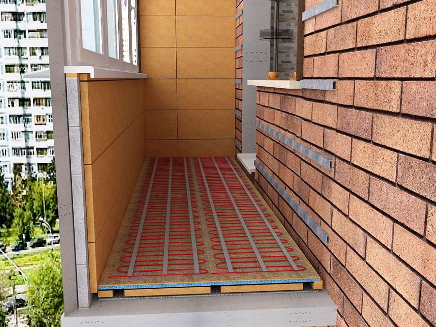 Монтаж системы на балконе может быть весьма хлопотным делом, но сделать теплый пол на балконе своими руками реально. После установки финальной стяжки заканчивают отделку стен помещения. Завершается ремонт напольным покрытием