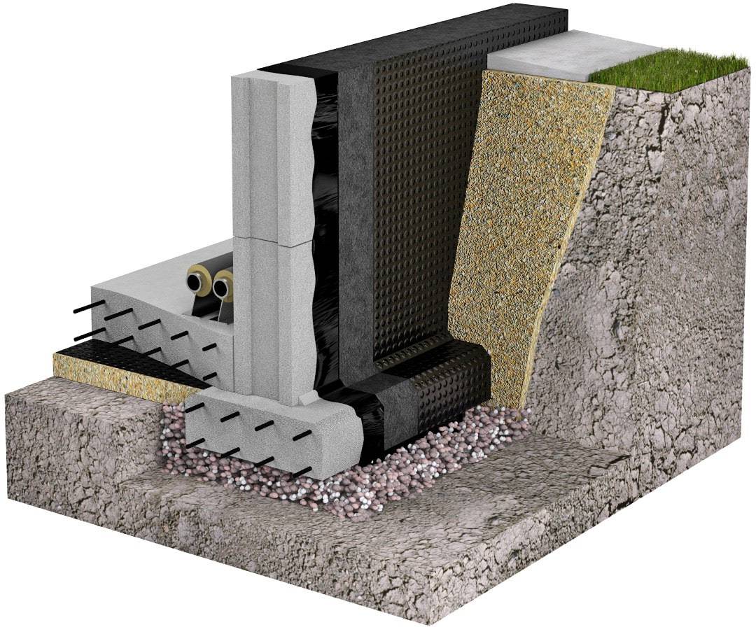 Несмотря на превосходные технологические параметры пеноплекса, утепление фундаментов различных типов предполагает не любое, а строго последовательно расположение слоев – как плит самого полимера, так и вспомогательных материалов. Такой «пирог утепления» должен выглядеть следующим образом: