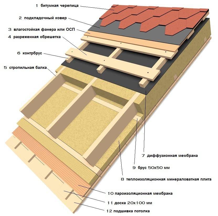 В частном доме потолком чердака обычно является стропильная система. Утепление стропил отчасти похоже на утепление чердачного перекрытия по балкам.