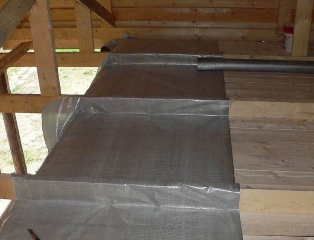Ввиду высоких температур, особенно над парилкой, к материалу пароизоляции предъявляются особые требования. Рубероид или обычные полимерные мембраны не подходят. При нагреве они могут расплавиться или выделять вредные вещества. Следует применять глиняную стяжку или специально предназначенные термостойкие пароизоляционные материалы, покрытые с одной стороны фольгой.