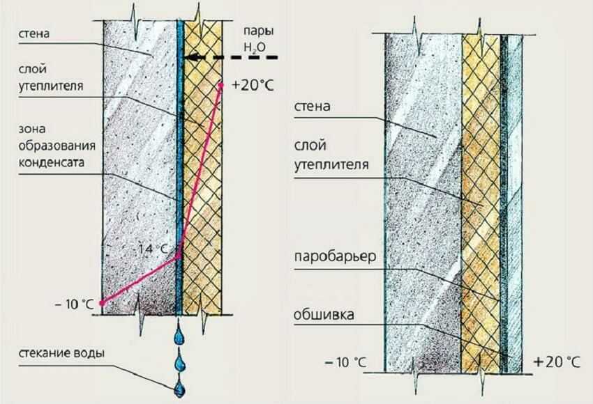 - при неправильном устройстве утеплителя с внутренней стороны помещения возникает опасность появления конденсата. Это происходит в том месте, где утеплитель граничит со стеной, и ничего хорошего от этого соседства ожидать не приходится. В частности, происходит следующее – влажность стены увеличивается, что приводит к снижению ее теплоизоляционных свойств и постепенному разрушению;