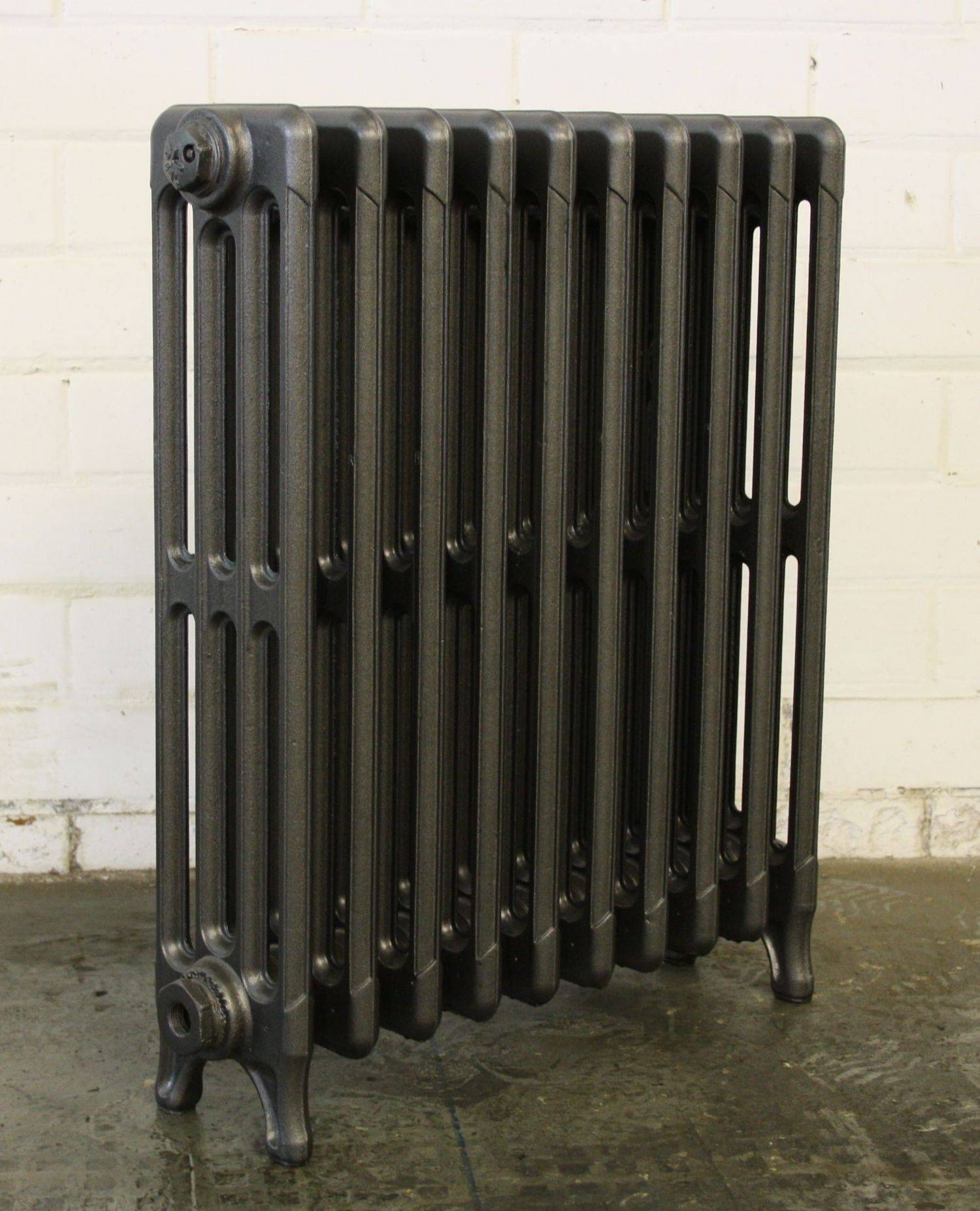 - Чугунные модели. Отличаются большой массой, повышенным коэффициентом теплоэффективности. Массивность конструкций диктует свои условия – модели выполняются в компактных размерах и не более 1,5 м высоты. Сложности в обработке металла и при монтаже готового изделия — минусы, поэтому чугун для вертикальных радиаторов используется редко. При этом материал не требователен к чистоте теплоносителя, в воде допустимы механические включения.