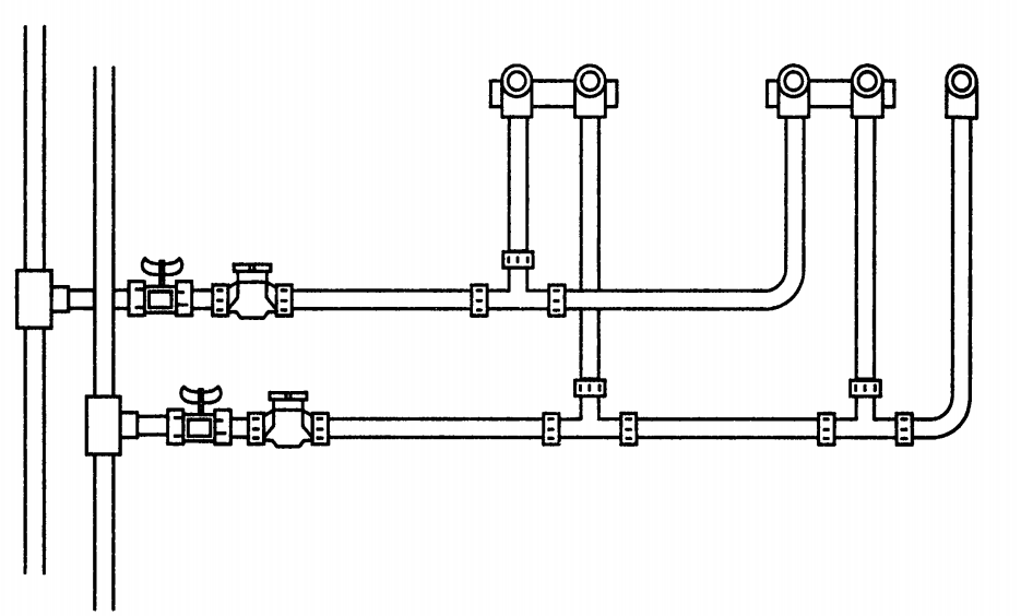 На самом деле, схем устройства водопровода в избытке, но есть два разных метода подключения потребителей: