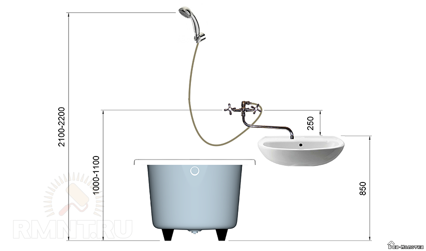 В принципе можно не проявлять инициативы и помещать мойку согласно стандартам советской эпохи. Но в таком случае каждому члену семьи будет неудобно проводить водные процедуры.