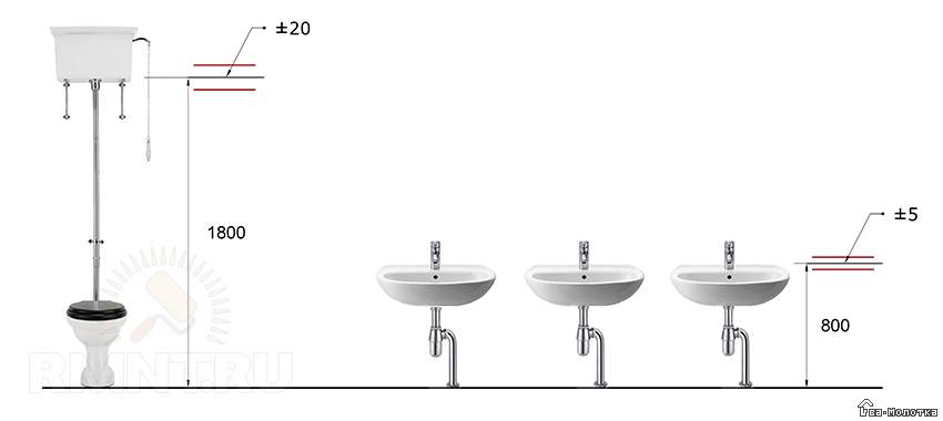 | Санитарные приборы | Ориентир | Высота от уровня чистого пола, с точностью ±20 мм |