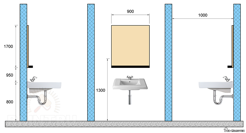 | Умывальники | до верха борта | 800 мм (среднее значение, выбирается с учётом роста членов семьи) |
